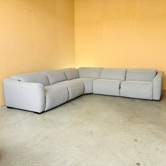 Gray 5-piece Power Reclining Fabric Sectional with 3 Power Headrests